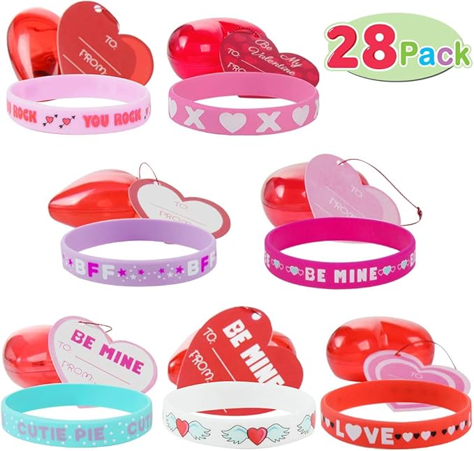 Kids Valentine's Party Favors Set ($22.95) — These rubber wristbands are a unique alternative to handing out Valentine's Day cards. With seven different patterns, colors and sayings, your child's friends will be wearing this adorable gift in no time.