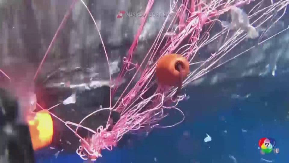 ยามชายฝั่งอิตาลี ช่วยวาฬหัวทุยติดอวนที่วางอย่างผิดกฎหมาย - ช่อง 7