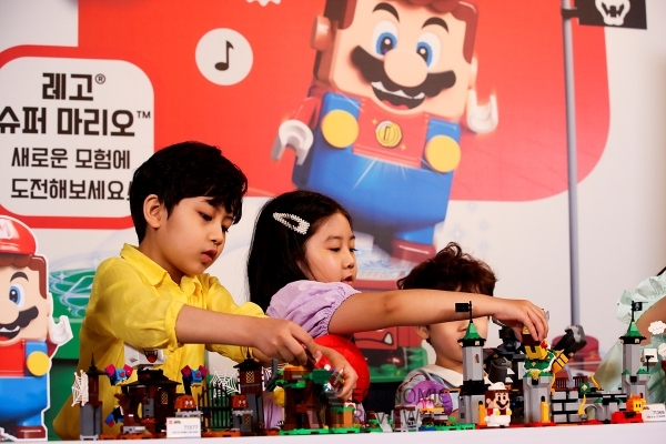 | ▲ 29일 오전 서울 종로구 광화문 포시즌스호텔에서 열린 레고 슈퍼 마리오 시리즈 출시 행사에서 어린이들이 레고를 선보이고 있다.사진=박재성 기자 | ||