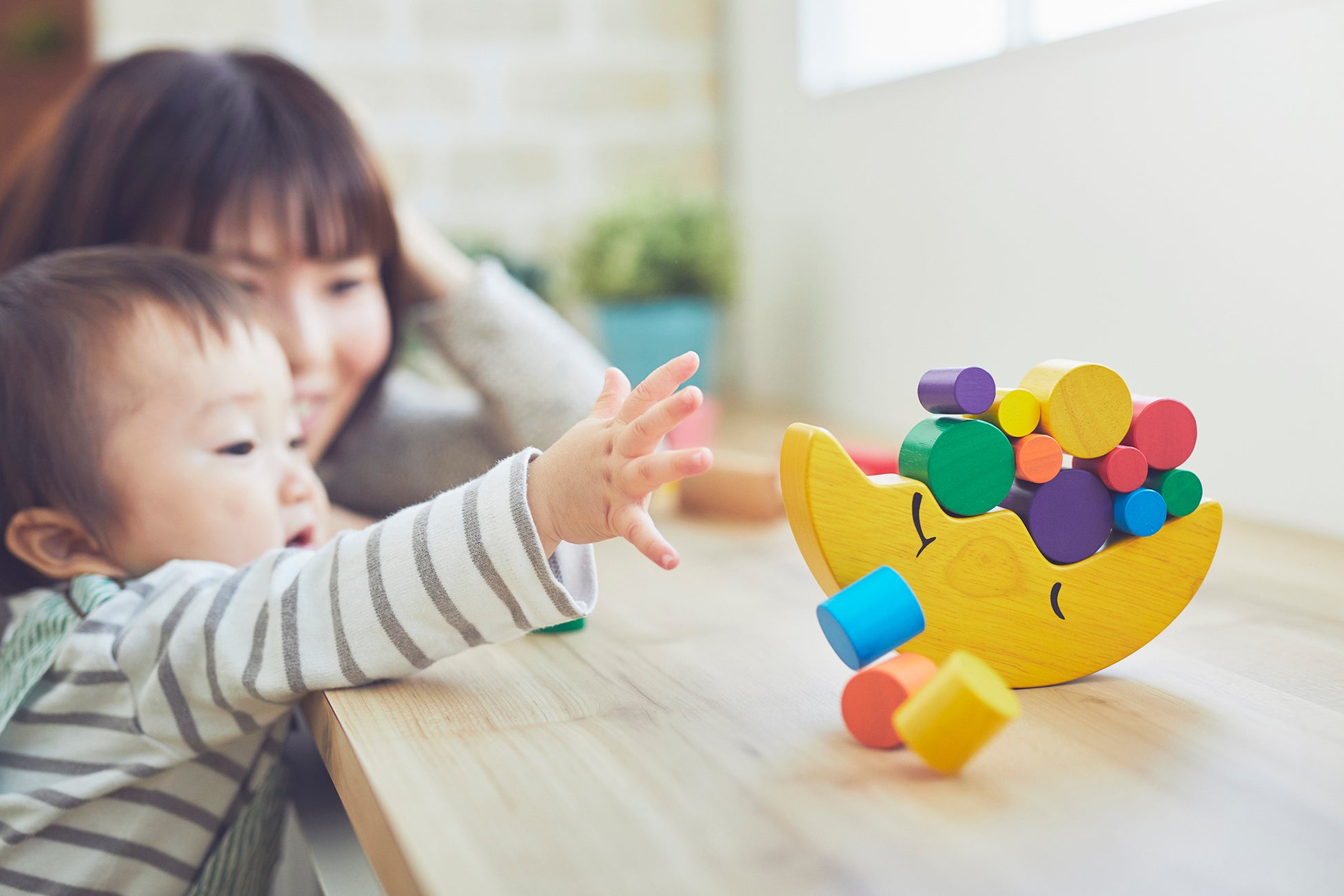 エド・インターの知育玩具は、日本国内での自社企画・設計でつくられています。手指や思考の発達に見合った遊び方のデザイン。子どもの好奇心を惹きつける色づかい。