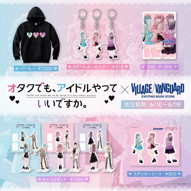 二次元と三次の間を行き来する表現で推しを推す「オタク」でありつつ、アイドルとして人前に立つ彼女たちの姿を描く【オタクでも、アイドルやっていいですか。】のヴィレッジヴァンガード限定描き下ろしグッズ発売!!!「おしごとBOOK」はオタク必携の一冊です!!期間限定、オンラインストアのみの受注販売ですのでお見逃しなく!!