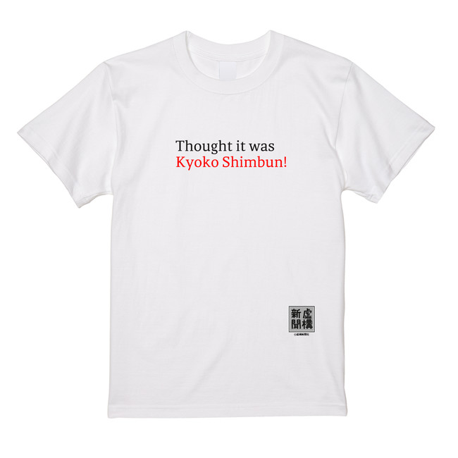 ネットミーム【虚構新聞かと思った!!】の英訳プリントTシャツ。