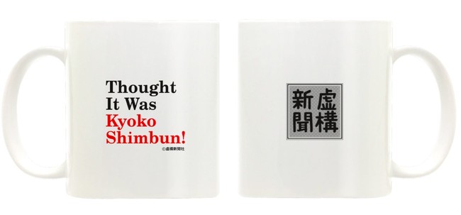 ネットミーム【虚構新聞かと思った!!】の英訳ロゴマグカップ。