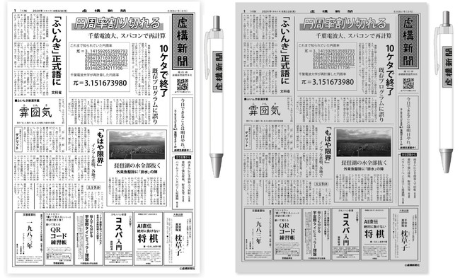 実在しない虚構新聞本紙を、細部まで忠実に再現したA3サイズのポスター。購読記念粗品のボールペン付き。