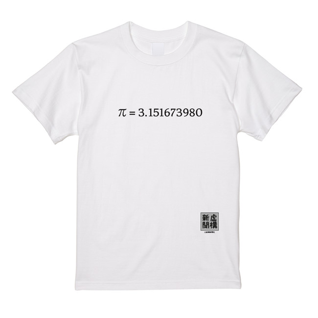 初期の名記事【円周率ついに割り切れる】をイメージしたTシャツ。