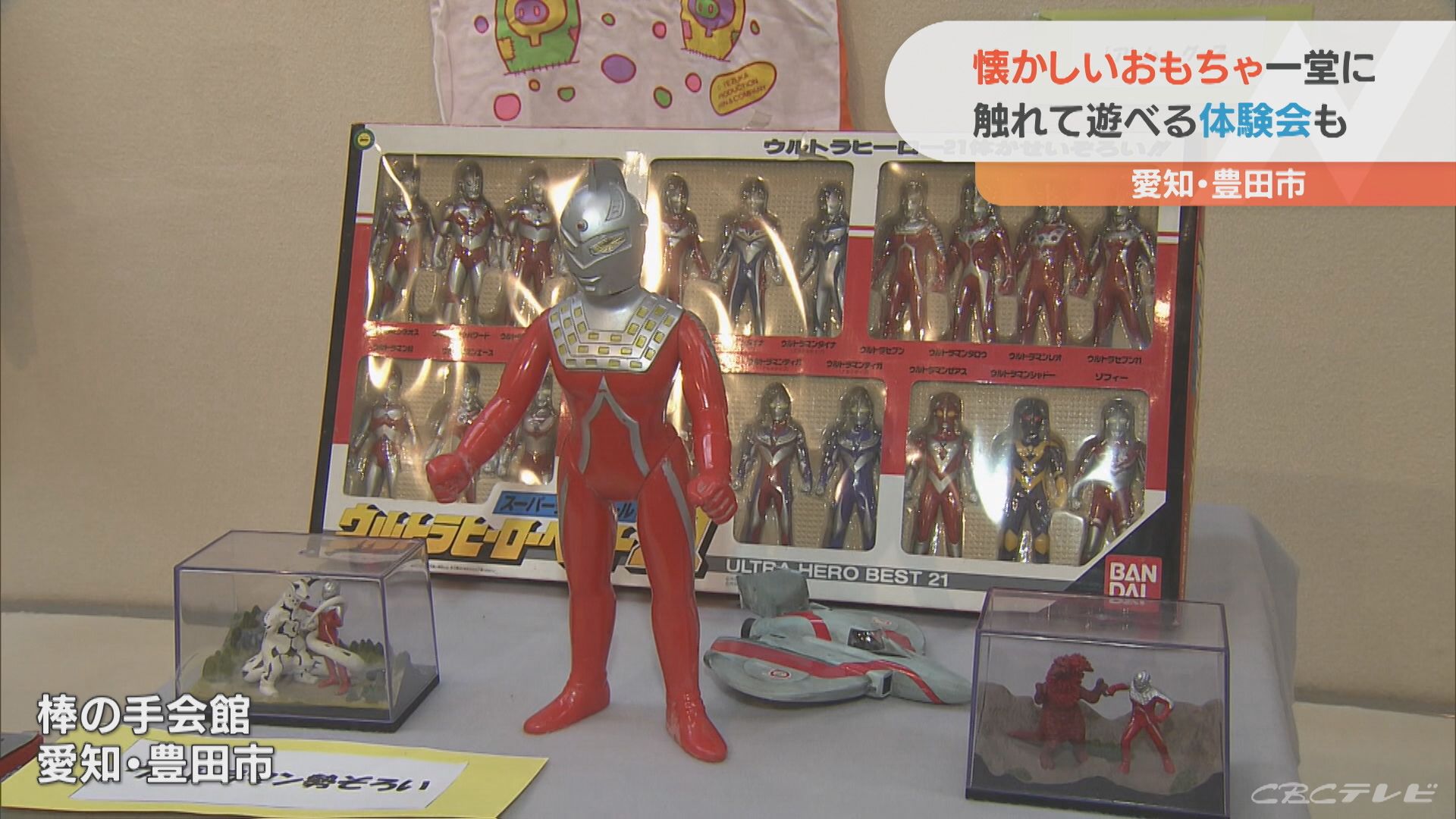 昔懐かしいおもちゃを集めた展示会が、愛知県豊田市で開かれています。ウルトラヒーローの人形に、ガンダムや大魔神のプラモデル、それに長野冬季オリンピックを記念して発売されたスケート靴を履いたアイスダンス…