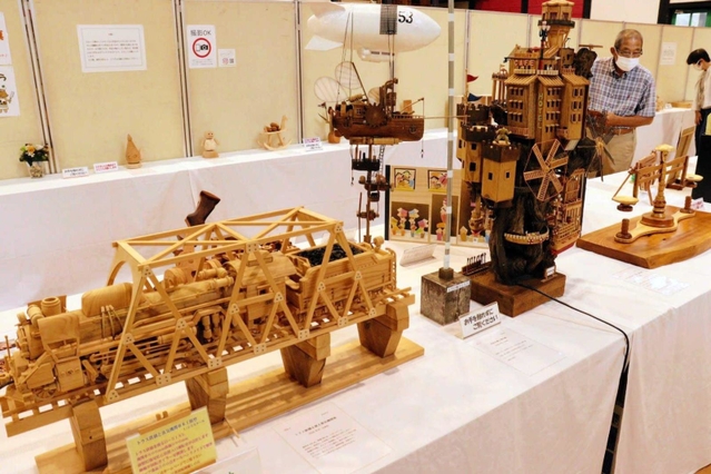 木製の手作りおもちゃの公募展「第34回丹波の森ウッドクラフト展(木のおもちゃ大賞展)・一般の部」(神戸新聞社など後援)の作品が、丹波年輪の里(兵庫県丹波市柏原町田路)で展示されている。ブナやヒノキなどを使った動くおもちゃ67点が来場者を楽しませている。25日まで。(谷口夏乃)
