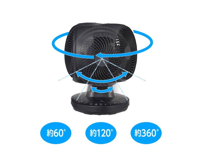 ・左右首振と上下首振を組み合わせ、約360度の立体的な風を拡散できる