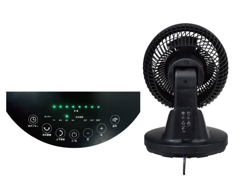 本製品は操作性にもこだわり、左右・上下の首振ボタンが独立していて、風量を「-・+」ボタンで調整できます。