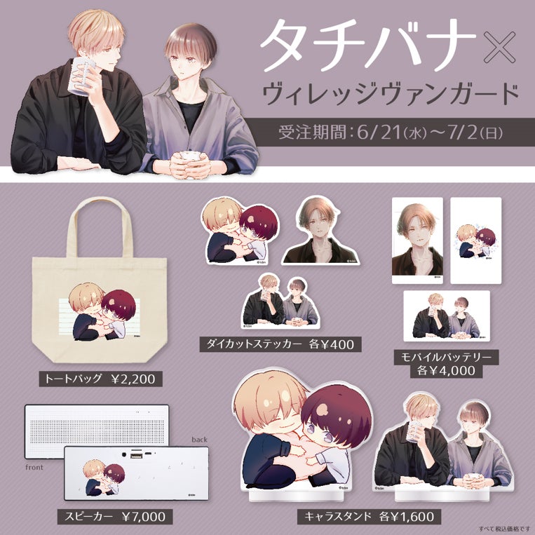 2023年6月21日(水)より、大人気作家【タチバナ】のヴィレッジヴァンガード限定グッズがオンラインストアにて発売決定!!今回のコラボの為に描き下ろしていただいたイラストは必見!期間限定のオンライン受注販売のみになりますのでお見逃しなく!