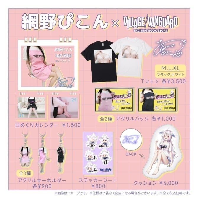 2023年4月27日(木)より、2次元と3次元のハイブリット型セクシーVtuber【網野ぴこん】のヴィレッジヴァンガード限定グッズが発売決定!バーチャルとリアルのデザインをどちらも使用したアイテム展開。購入できるのはオンラインストアのみの期間限定受注販売です!皆様お見逃しなく!
